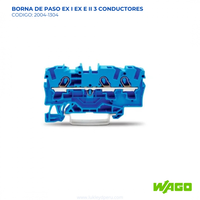 BORNA DE PASO AZUL EX i EX E II 3 CONDUCTORES MARCAJE LATERAL/CENTRAL CONEX. VERTICAL(2004-1304) - WAGO