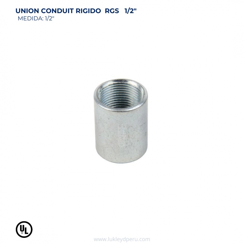 La Unión Conduit RGS  es un accesorio de acero galvanizado que garantiza protección anticorrosiva y alta resistencia en instalaciones eléctricas visibles u ocultas. Cumple con las normas ANSI C80.6 – UL 6, asegurando seguridad en cualquier entorno, incluso en contacto con agua o aceite.