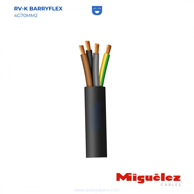 El cable Barryflex RV-K 4G70MM2 de Miguelez es un cable de baja tensión especialmente diseñado para instalaciones industriales y comerciales de alta exigencia. Con 4 conductores de 70 mm², este cable garantiza una transmisión de energía estable y segura en aplicaciones de alta carga. Su gran flexibilidad facilita la instalación en espacios reducidos o de difícil acceso, mientras que su robusto aislamiento resiste el desgaste, condiciones climáticas adversas y exposición a agentes químicos. Es ideal para entornos donde la durabilidad y la seguridad eléctrica son prioritarias, proporcionando una excelente relación entre rendimiento y resistencia.